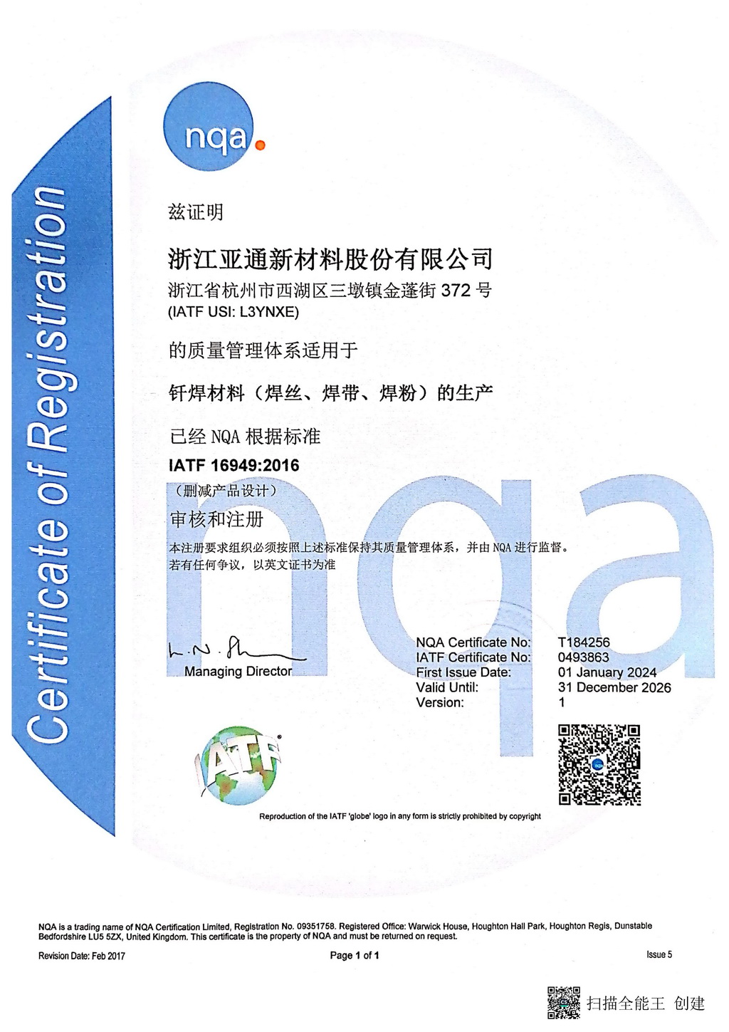 2006年“浙江亚通焊材有限公司”成立