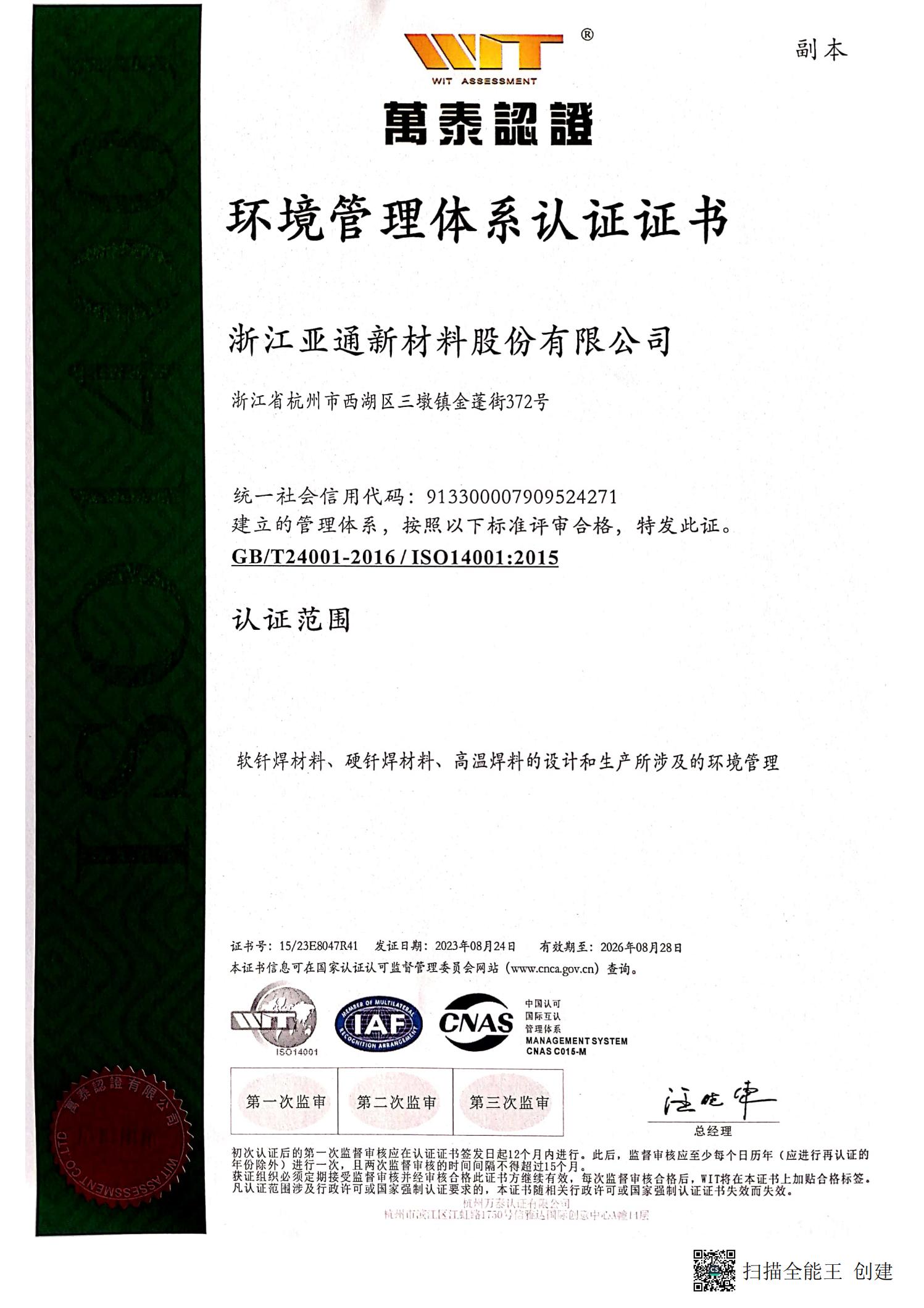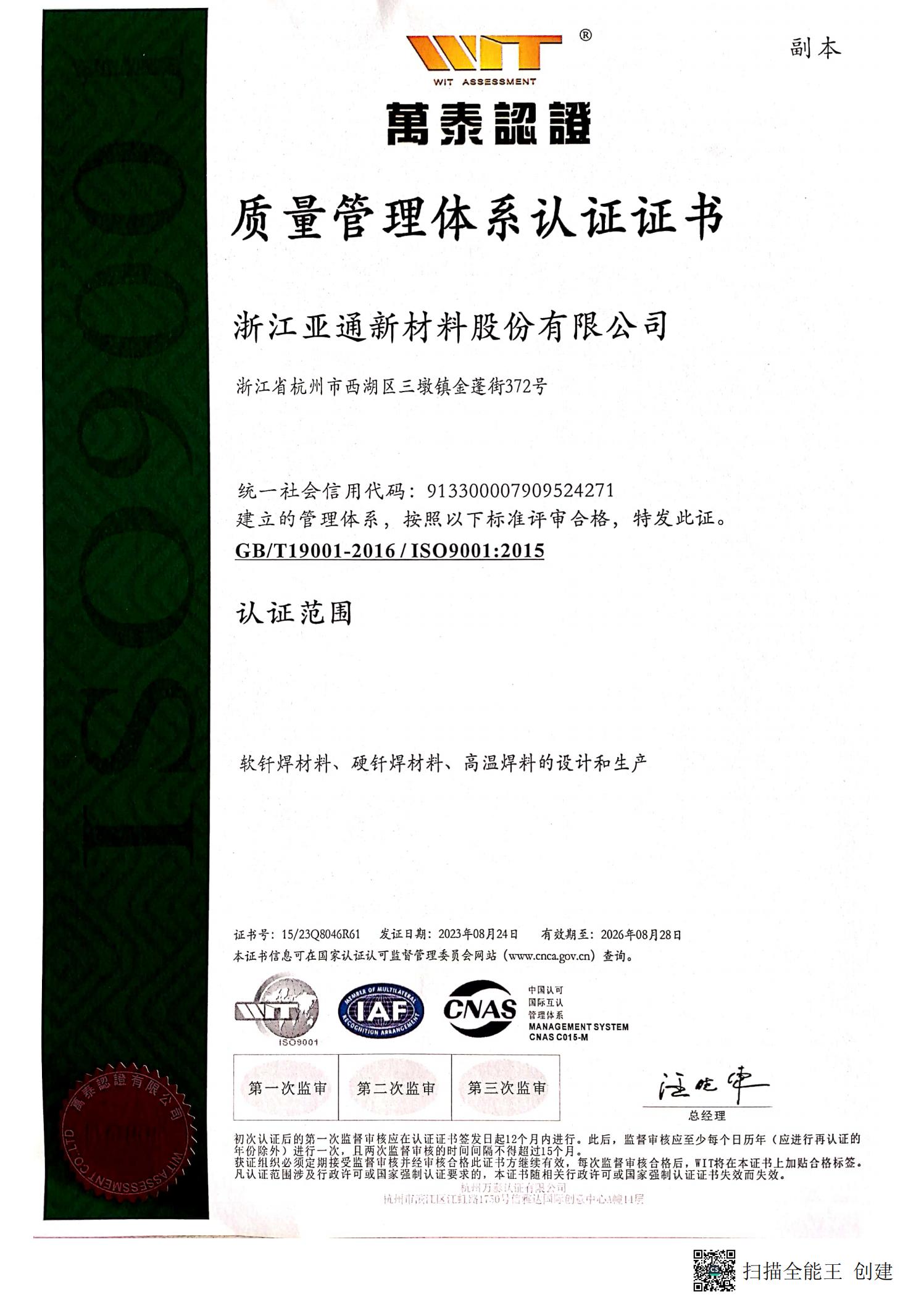 2016年获批建设“浙江省亚通先进钎焊材料重点企业研究院”;荣获“国家科技进步二等奖”