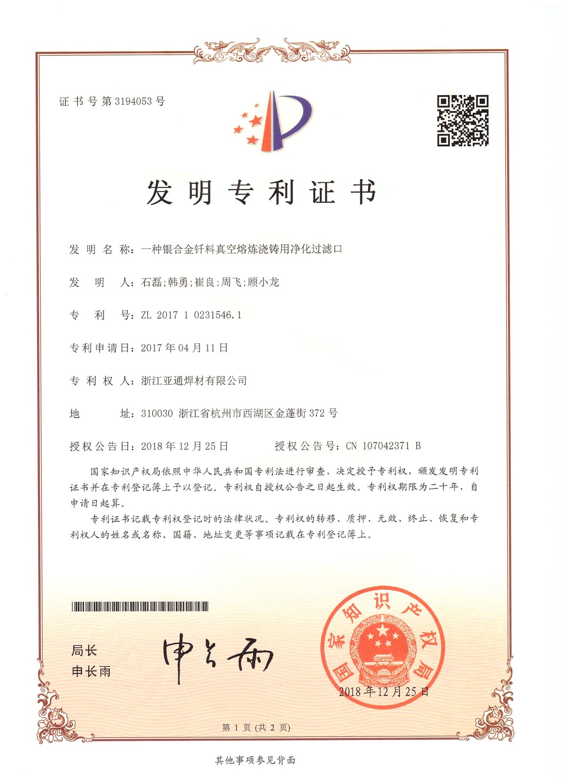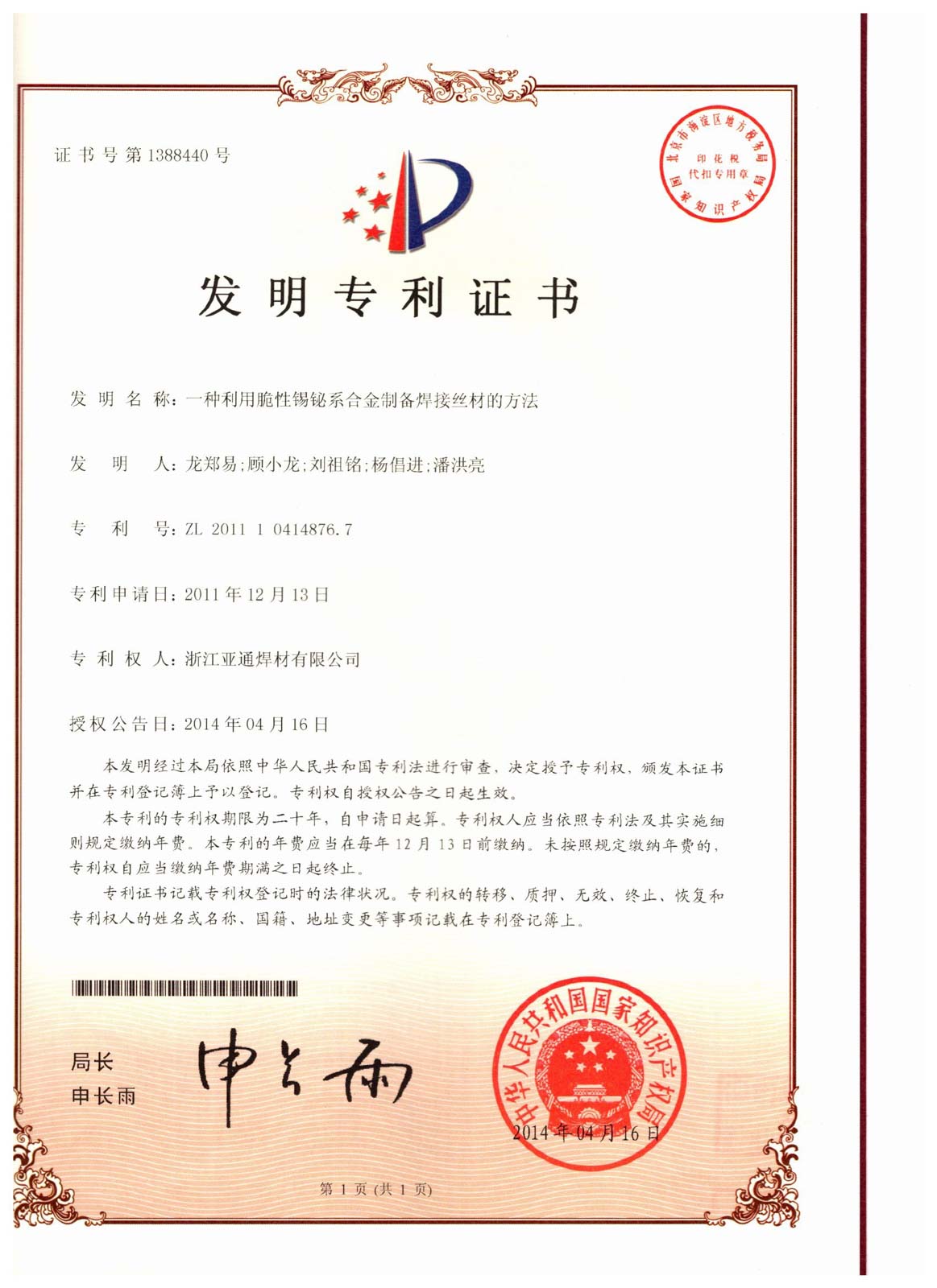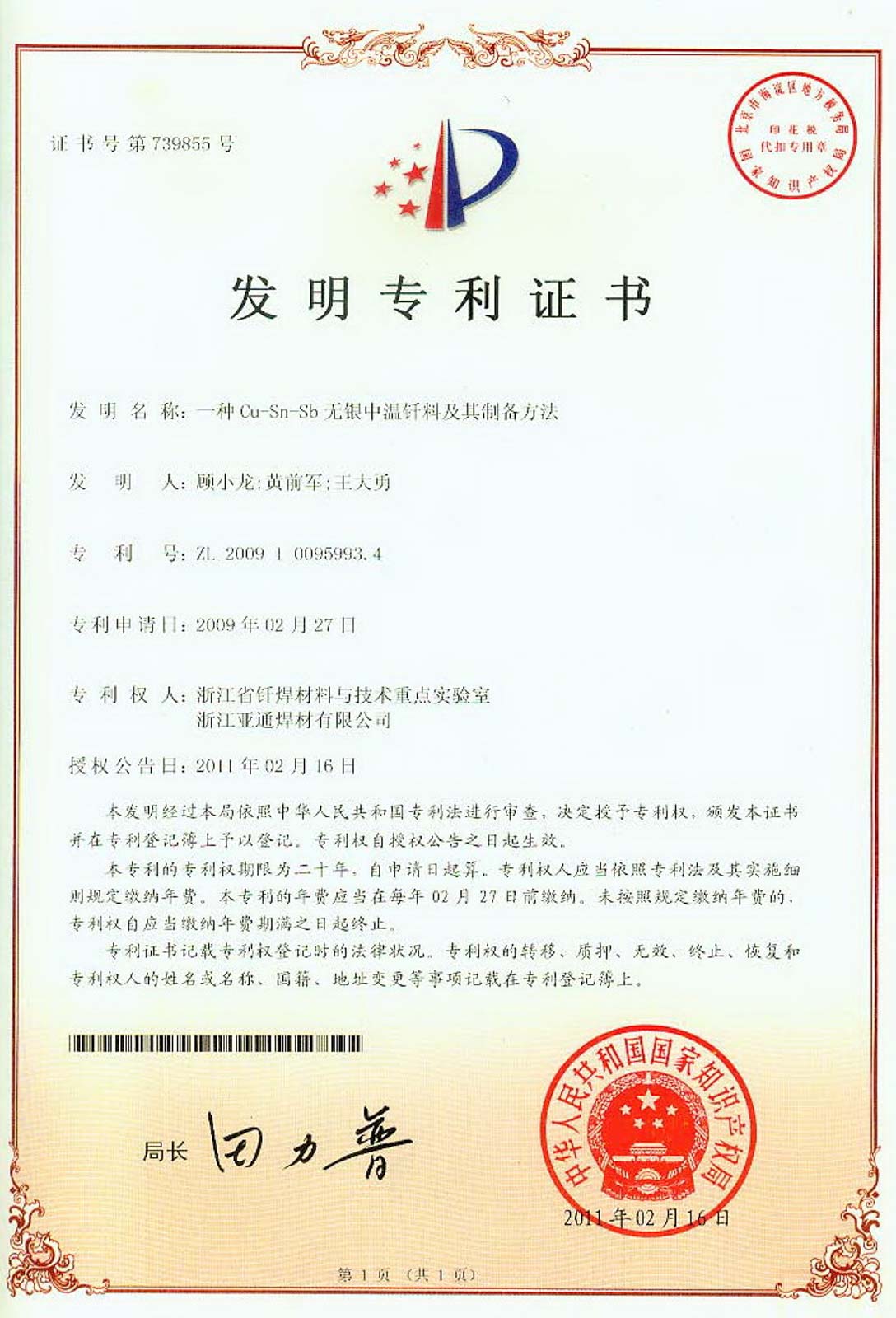 团队开发的新型无铅钎料不仅打破了国外无铅钎料知识产权壁垒,很好地解决了现有无铅钎料存在的诸多缺陷,并参与制定了3项国家标准及4项行业标准的制订,同时获得5件国家发明专利。在我国研制发射的神舟六号、七号飞船回收系统中,90%的焊锡材料是由该团队研制生产。